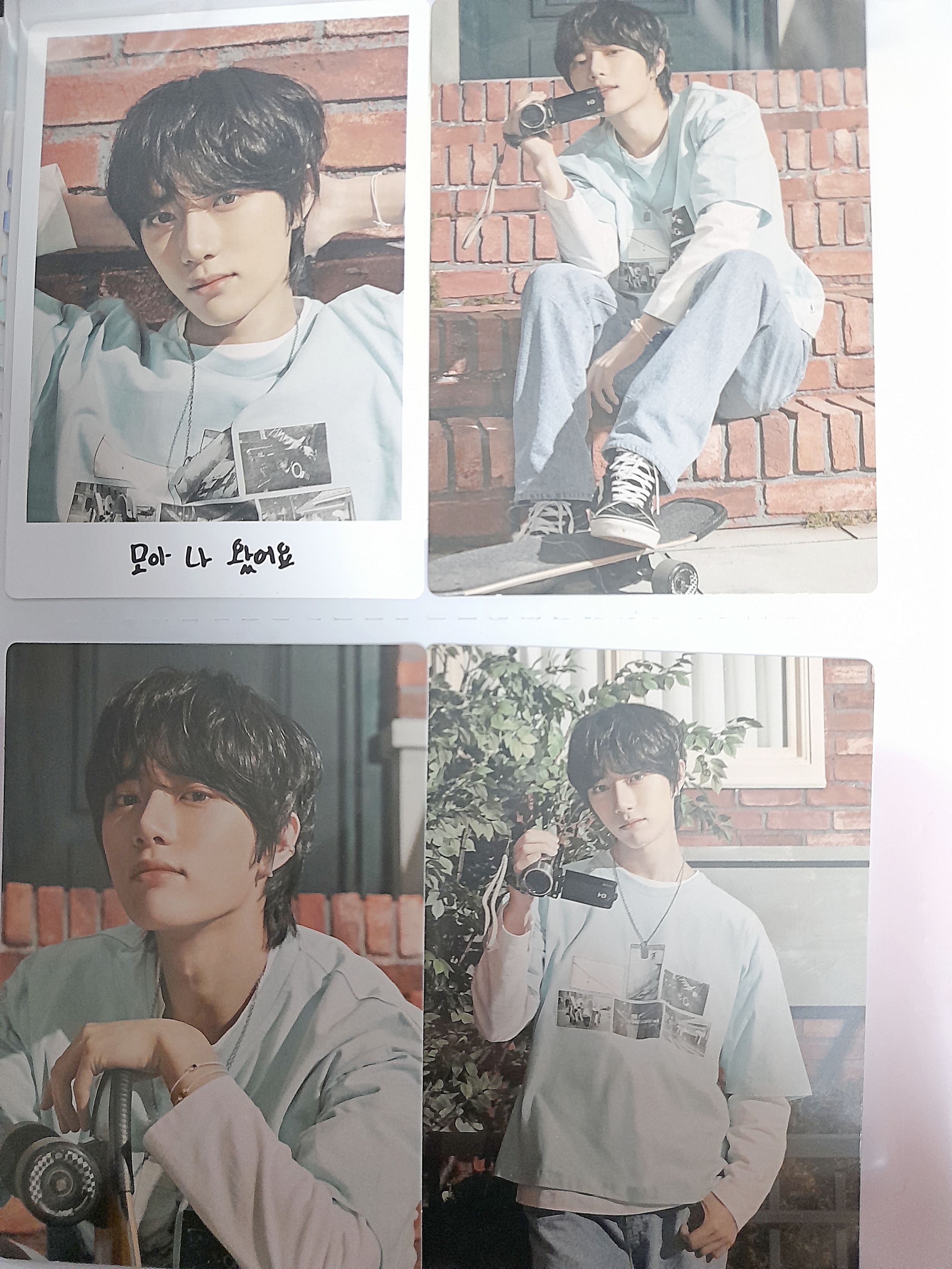 근데 좀 생각해보니까 시그를 완전히 잊고 있었음 ㅋㅋㅋㅋㅋ 아... 근데 양면포카라 좀.. 덜 땡김 ㅠㅠㅠ 암튼 진짜 가지고 싶었던 일본 포카도 범규 오고!! 요새 좀 랜덤운이 좋은 것 같아!! 근데 이 얘기를 호메한테 하면 1/5이라고 무시함 ㅍㅅㅍ 팬라 미니포카 분철받은 것도 분철 총대 분이 6번 빼고 한장씩 보내주심. 배닥(출처-범규) 그리고 한 이틀 고생해서 6번 양도 받아서 다 모으고 오늘도 범규 나와써ㅠㅠㅠ 그래서 시그도 까먹었던 거 같구. 근데 이번에 넘 운이 좋았으니까 메모리즈 랜덤이 걱정 되는 것이다. 오직 포카만을 위해서 딥디로 샀는데. 후...